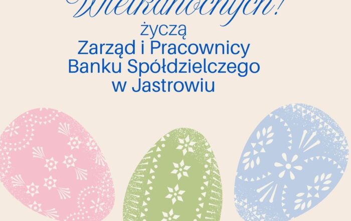 Wesołych Świąt Wielkanocnych życzą Zarząd i Pracownicy Banku Spółdzielczego w Jastrowiu